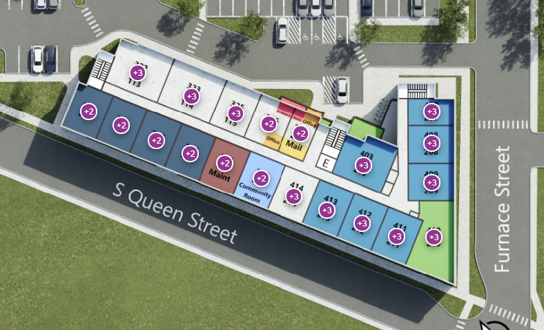 - Three Housing Unit types: 526 to 1,276 sq. ft.