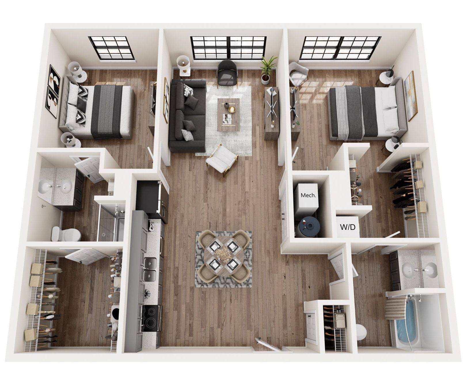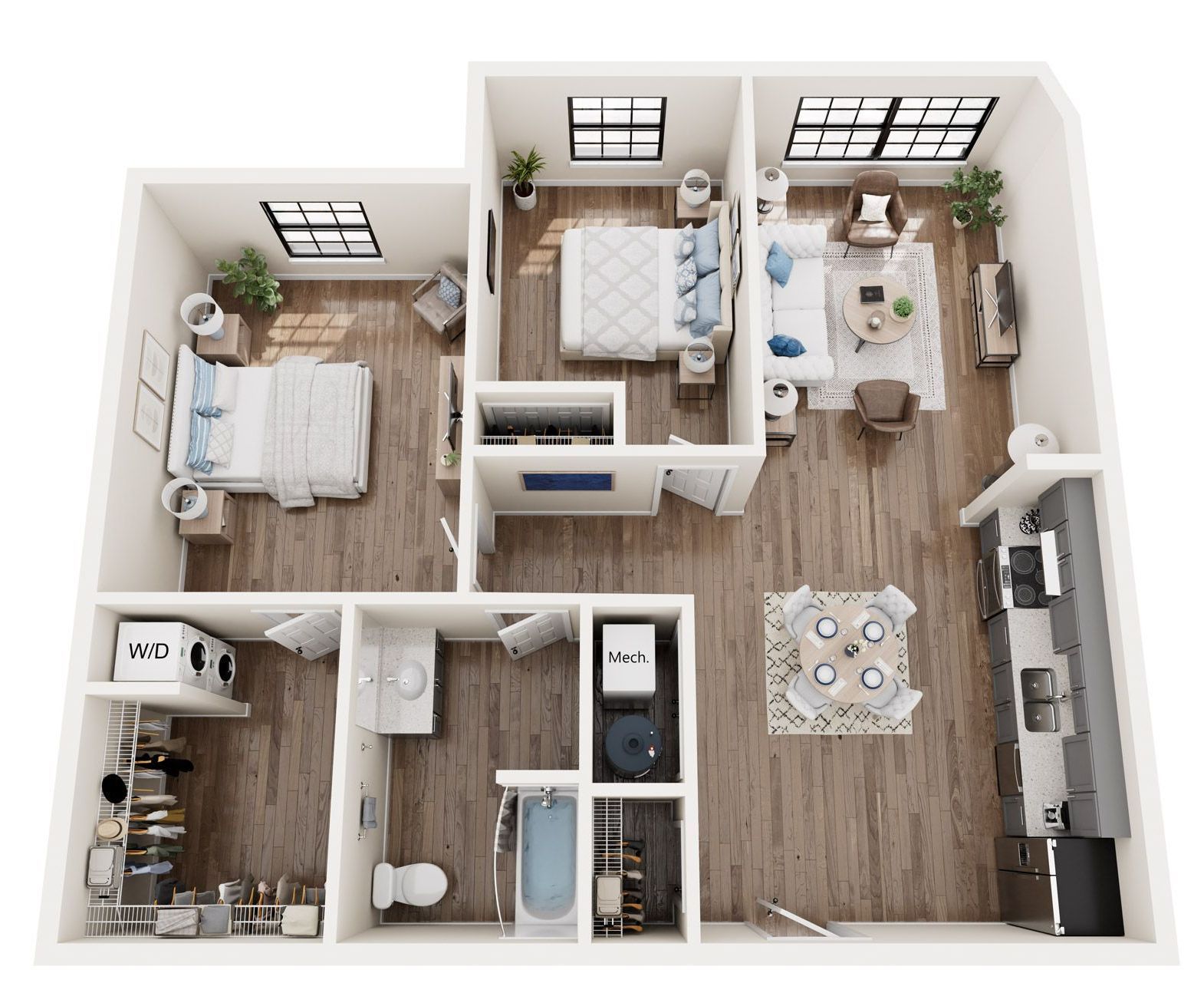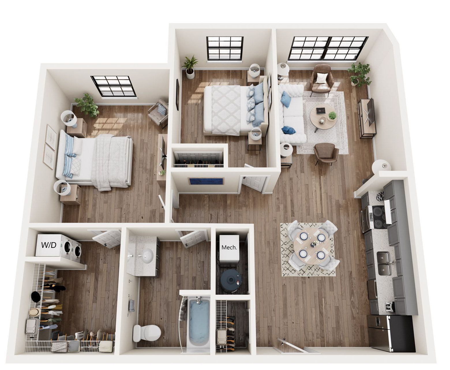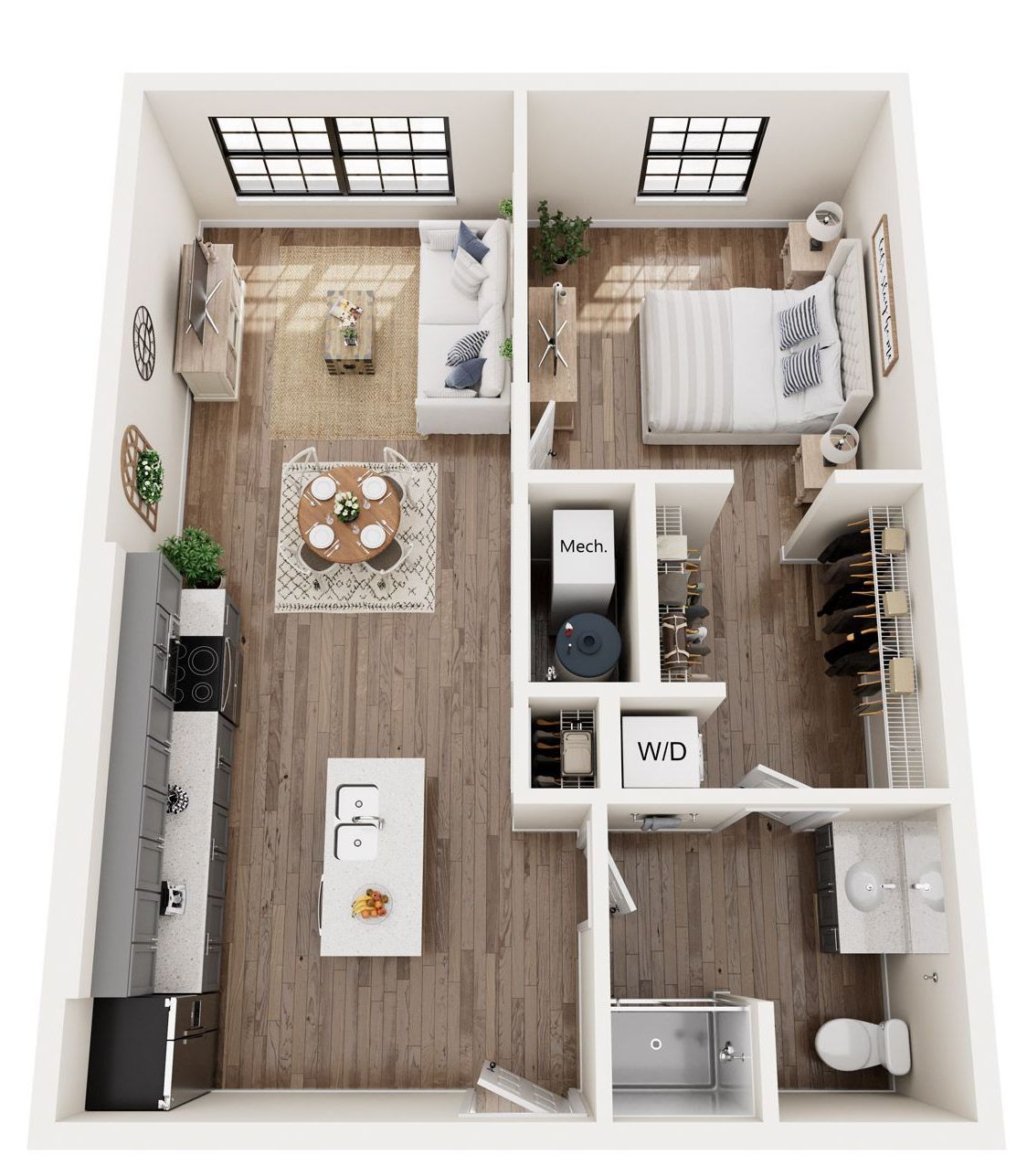 Our vibrant community boasts studio, one-, and two-bedroom apartments, all with natural light and designed with sleek, modern finishes and cutting-edge smart home technology. Experience comfort redefined in our contemporary apartments, where every inch is crafted to maximize your living space.